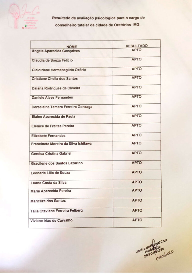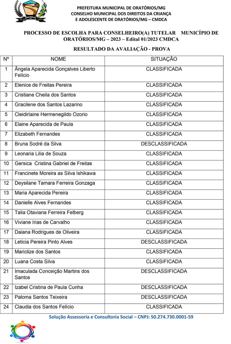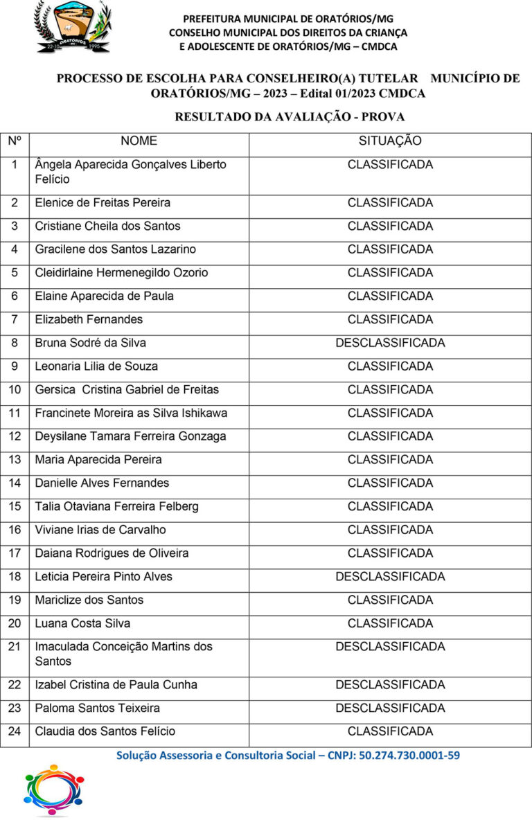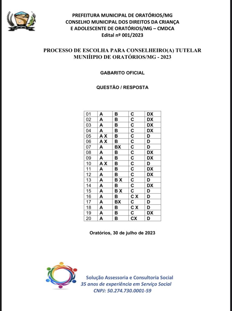 GABARITO OFICIAL – PROCESSO DE ESCOLHA PARA CONSELHEIRO(A) TUTELAR MUNIÍIPIO DE ORATÓRIOS/MG – 2023