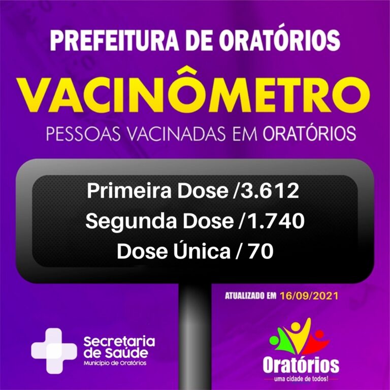 Confira o balanço da vacinação contra a Covid-19 no município de Oratórios atualizado em 20 de agosto de 2021. Cumprimentamos de forma especial a equipe