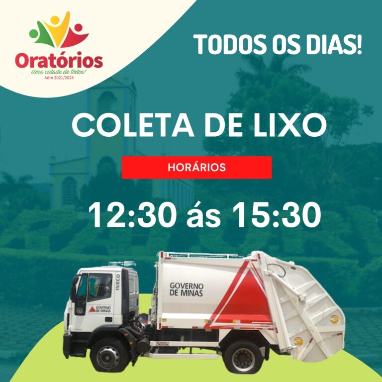 Atenção para os horários da Coleta de Lixo em nossa cidade! Colabore com a limpeza urbana, coloque o lixo 30 minutos antes do horário da