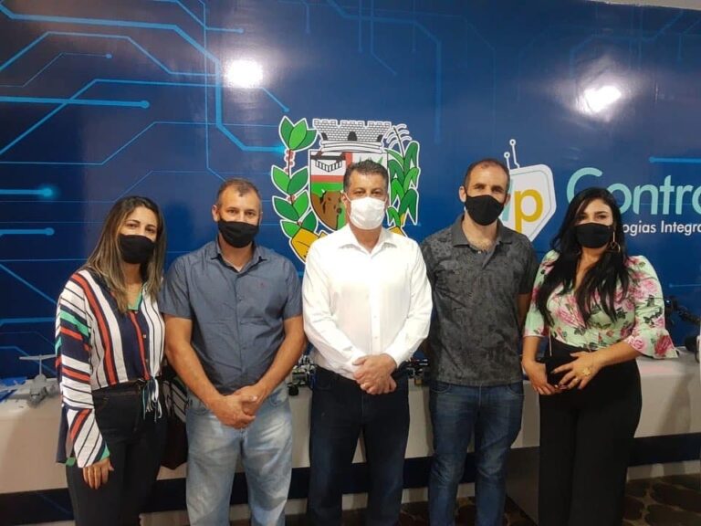 O prefeito Carlos acompanhado da primeira dama Gisele, do presidente da câmara Vinicius Bragioni e da Sec de Educação Dulcinéia Castro, estiveram nesta sexta-feira 1
