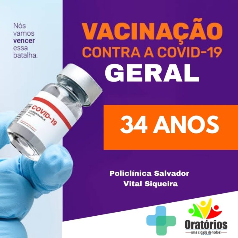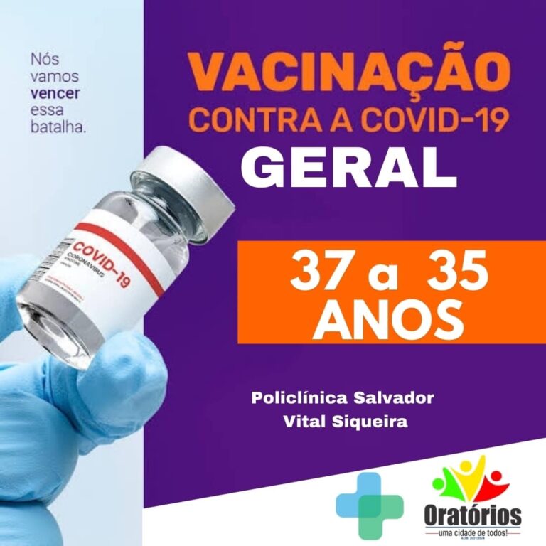 A vacinação contra a Covid-19 está avançando no município de Oratórios!A partir de amanhã 26/07/2021 poderão se imunizar pessoas na faixa etária de 37 anos