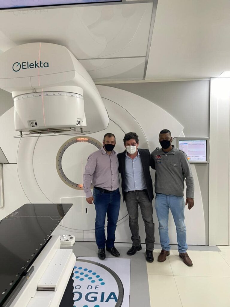 SERVIÇO DE RADIOTERAPIA EM PONTE NOVA . O prefeito Carlos e o vice-prefeito Eriverto, acompanhados do secretário de saúde, Elias Andrade e do vereador e