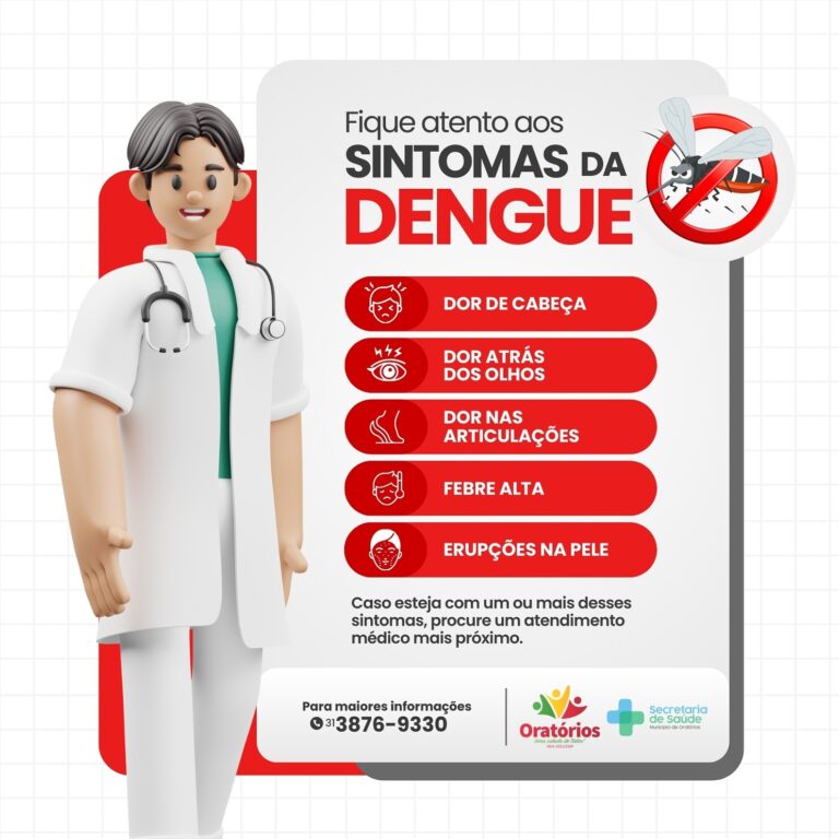 Atenção aos sintomas da dengue. Quando aparecerem esses sinais, vá a uma Unidade de Saúde. É importante não tomar remédio sem orientação médica!