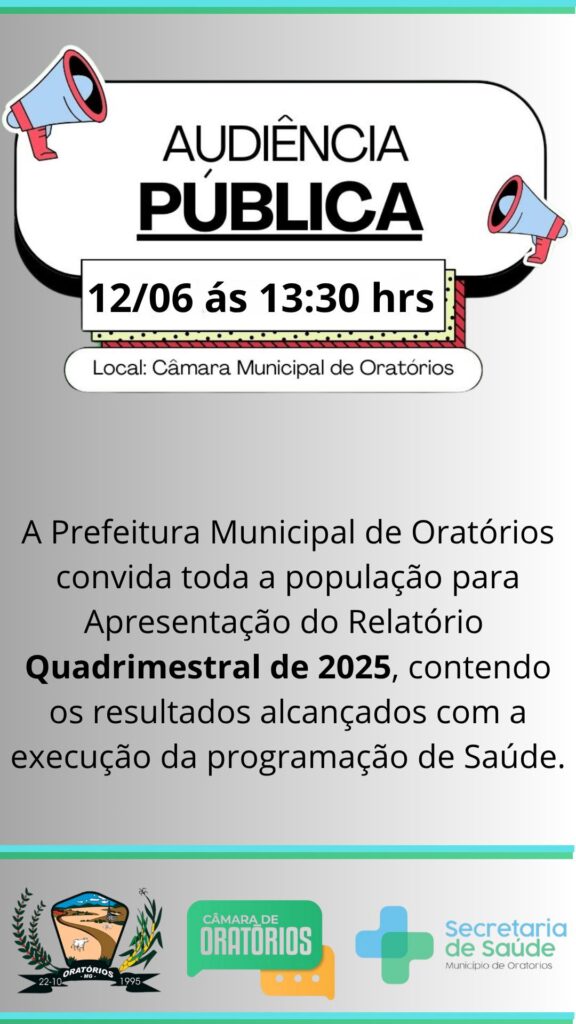 Audiência na Câmara Municipal de Oratórios – Apresentação do Relatório Quadrimestral de 2025