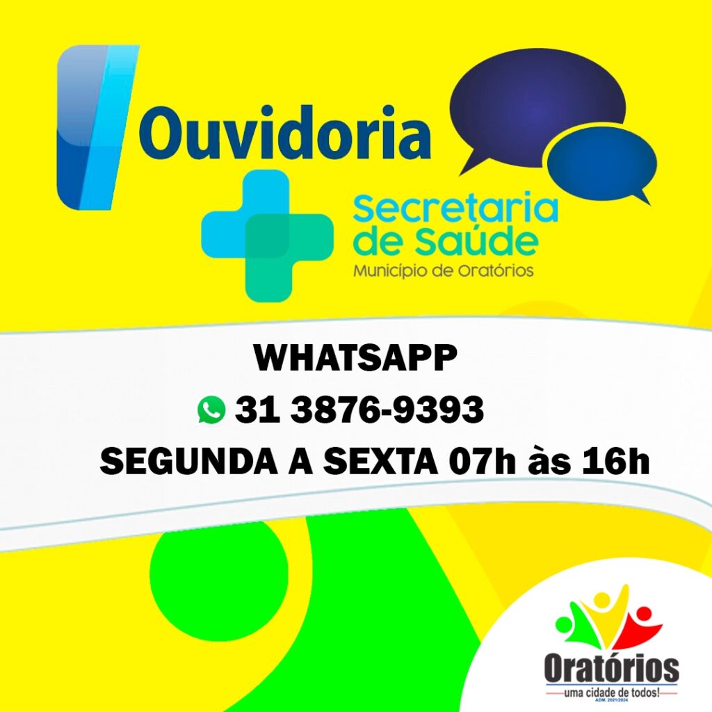 ?? A Secretaria Municipal de Saúde de Oratórios criou o seu canal de Ouvidoria Pública,  para que o cidadão faça o registro de suas solicitações, elogios, informações, reclamações, denúncias ou sugestões sobre os serviços de saúde.